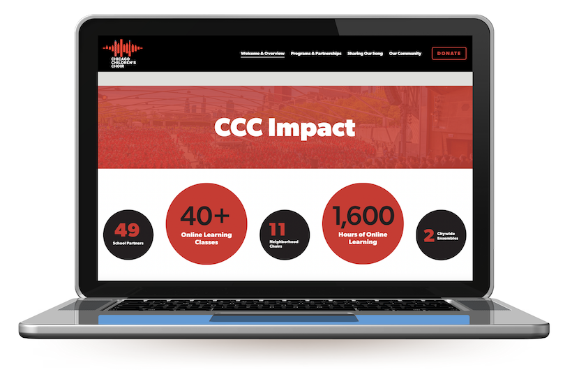 CCC’s 2021 Annual Report website incorporates statistics and graphical bullets on its homepage to break up text and draw visitors in.