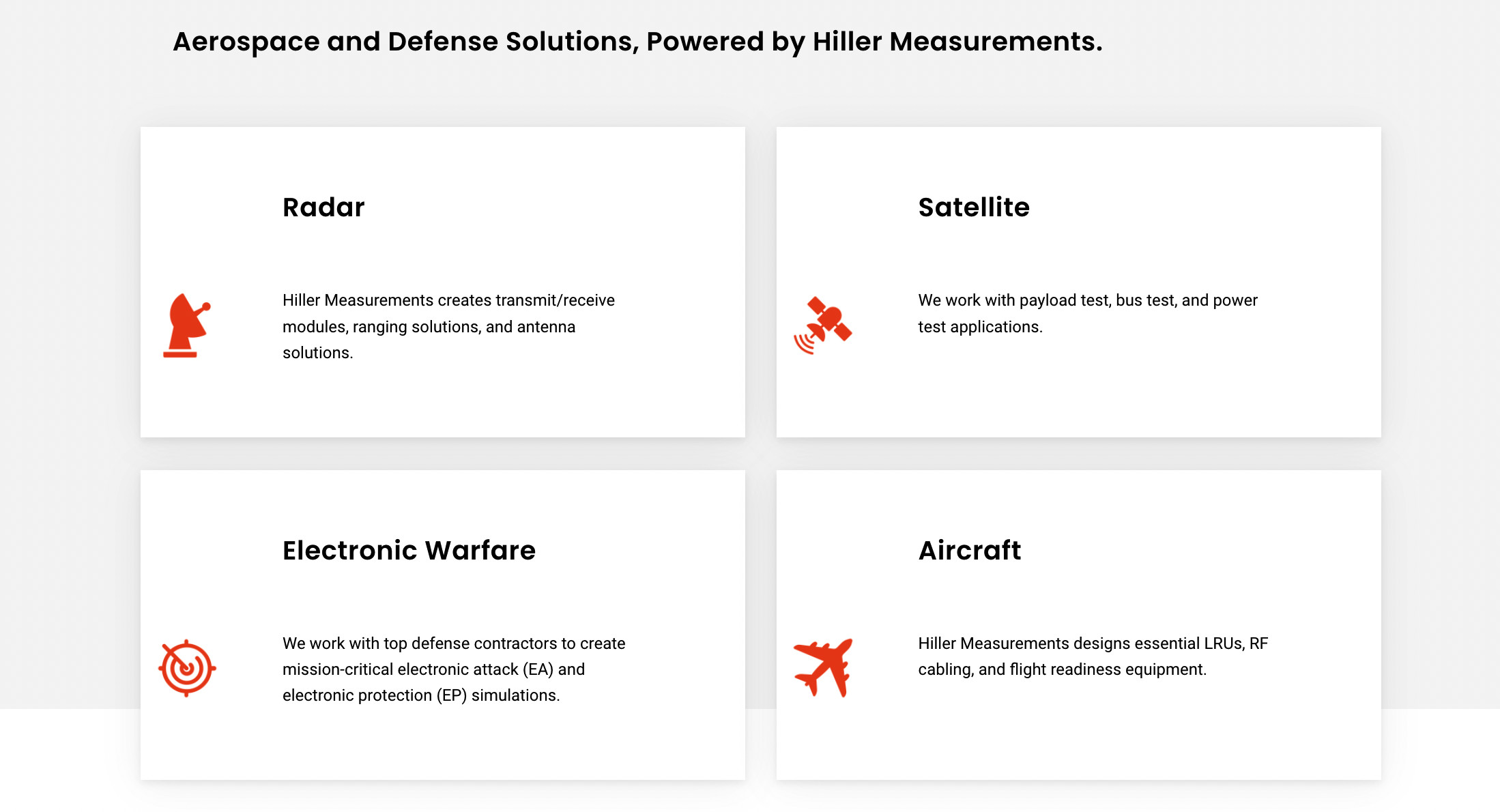 Instead of using bullet points in a web page, create an icon section instead. This section on Hiller Measurements’ website could have just been a bulleted list. Instead, icons and graphics make this section organized and engaging.