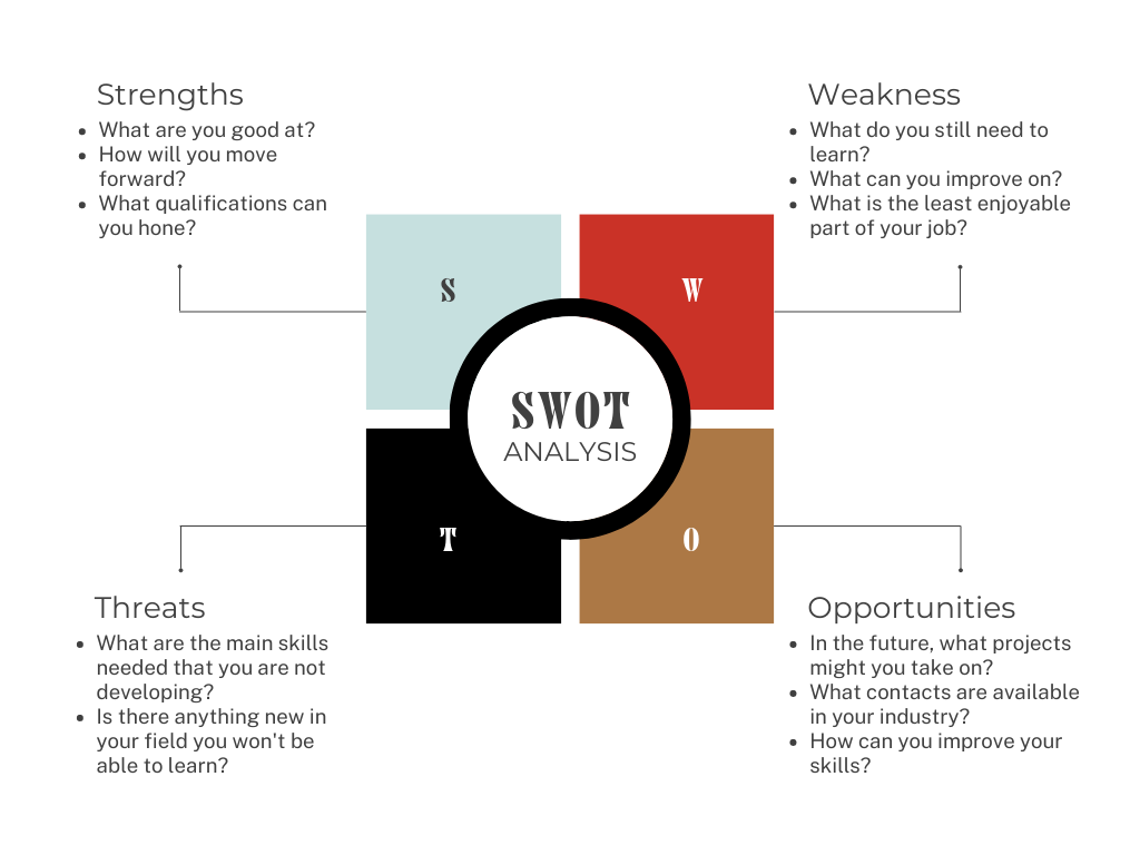 I also suggest conducting a SWOT analysis at least once a year. You should be sure to