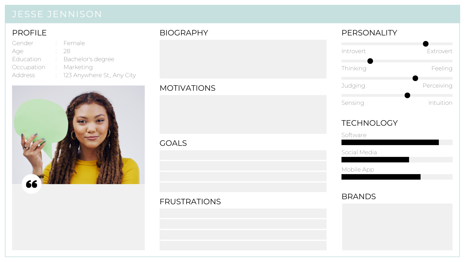 Strategize your target buyer personas using a template like this. Download our buyer persona workbook here.
